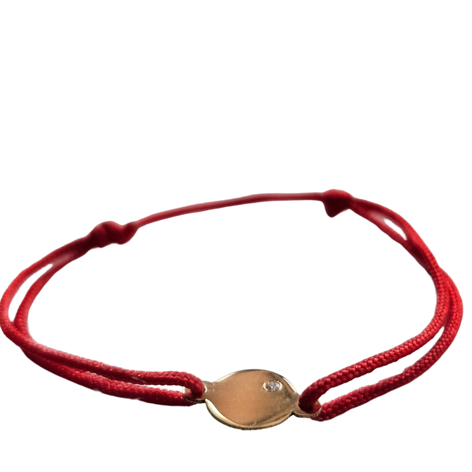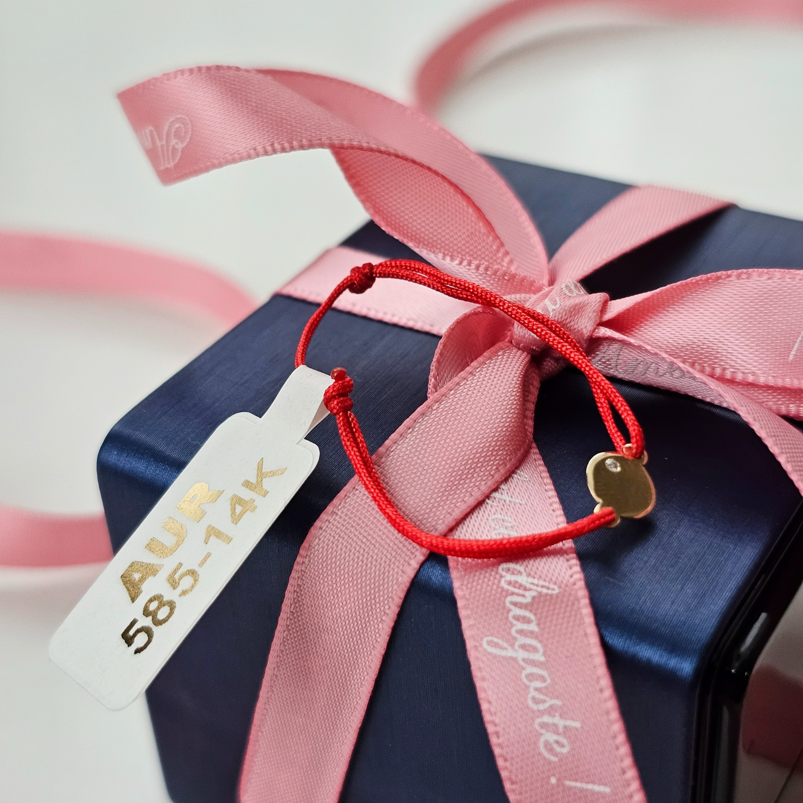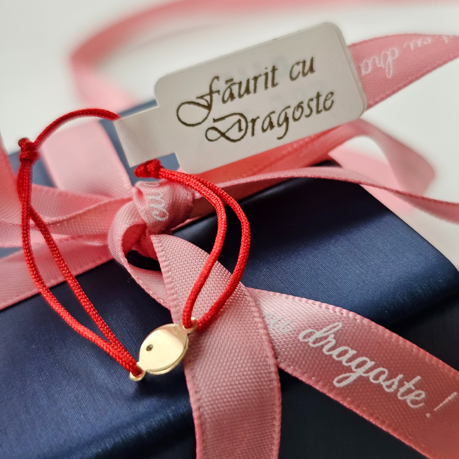 Aceasta bratara uimitoare este realizata cu grija, avand la baza un snur rosu, simbol al protectiei si norocului in multe culturi. Elementul central al bijuteriei este un mic banut decorat cu un diamant stralucitor, simbol al puritatii si al eternitatii. Aceasta combinatie adorabila creeaza o bijuterie atat de speciala incat va fi pastrata cu dragoste de catre familia micutului pentru totdeauna.
