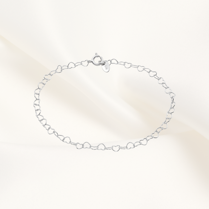 Brățara Heart Melody reprezintă combinația perfectă între delicatețe, eleganță și design romantic. Realizată din argint 925 de calitate superioară, fiecare inimioară este atent modelată și conectată, creând un lanț armonios și flexibil care se așază confortabil pe încheietura mâinii.
