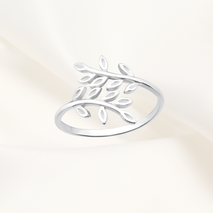 Descoperă bijuteria Liora inelul care aduce frumusețea naturii direct pe degetul tău. Inspirat de delicatețea frunzelor de măslin, designul său înlănțuit creează o armonie subtilă între natură și eleganță contemporană.